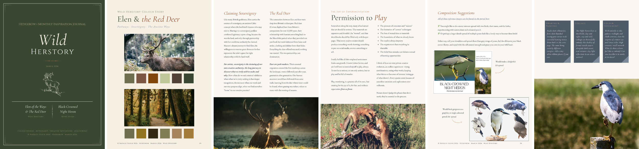 A beautifully crafted companion that walks beside you for the whole month, your field guide to the season's themes, beings, and creative world. Inside you'll find colour stories drawn from your wild subjects, mythology and meaning, atmosphere and sensory inspiration, creative invitations across every medium, and a deep dive into that month’s theme. Something to return to again and again throughout the month, throughout the year, whenever you need a thread to follow or a mood to step into.