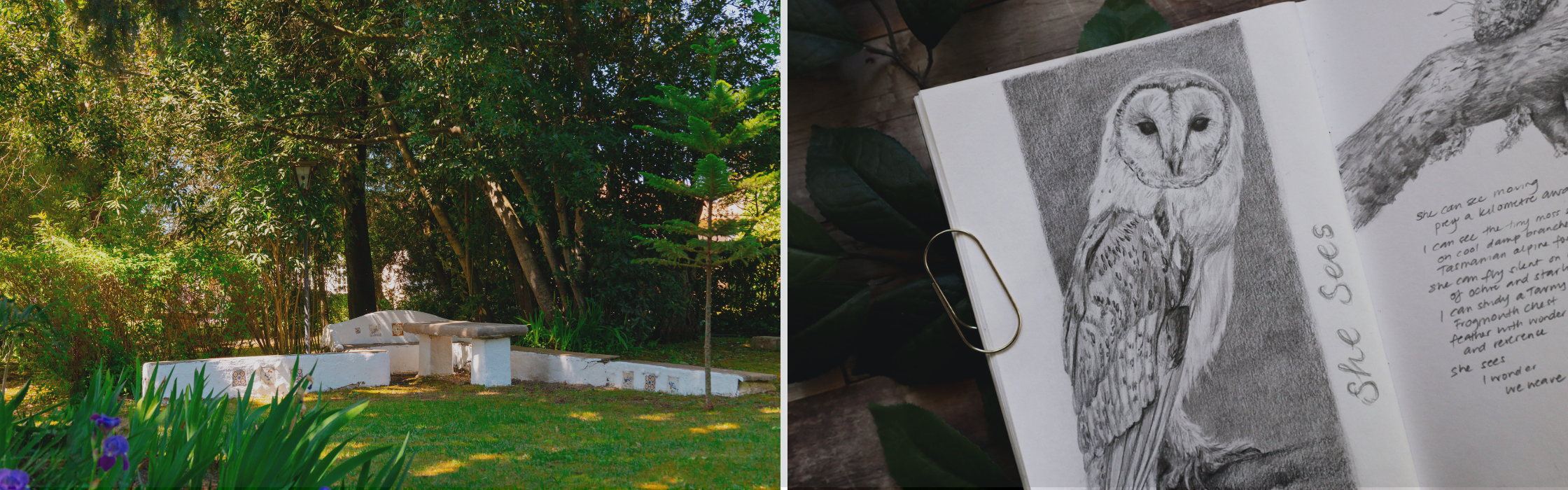 We'll practice all three strands of Creative Ecology together: Wild Place (the sensory richness of Portugal itself), Wild Being (the creatures we encounter and honour through our art),