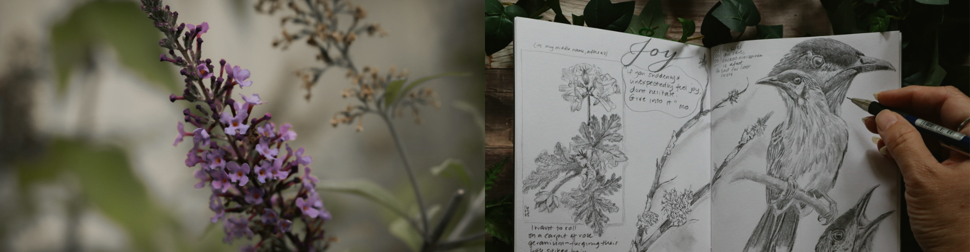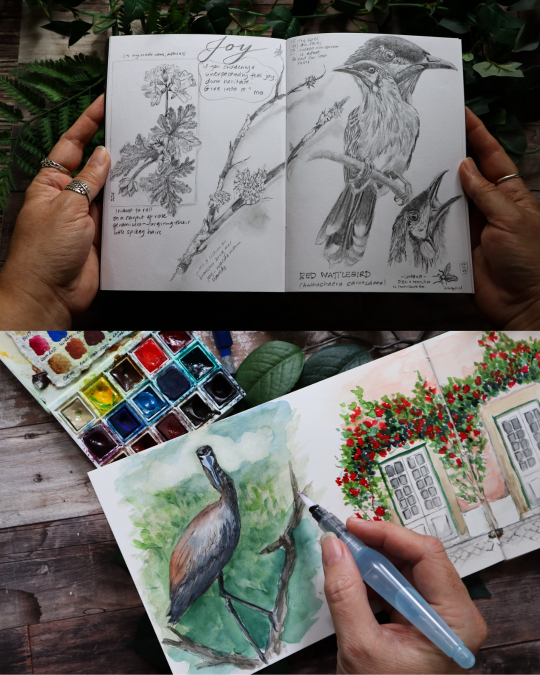 Here, we'll work with those wildlife photographs from our boat trip, learning to translate what we witnessed into sketchbook pages. I'll guide you in working with graphite, coloured pencils and watercolour, teaching approaches that honour both realism and your unique way of seeing. We will have thought and journaling prompts, to fill our pages with words too, or to create those wild words separately.